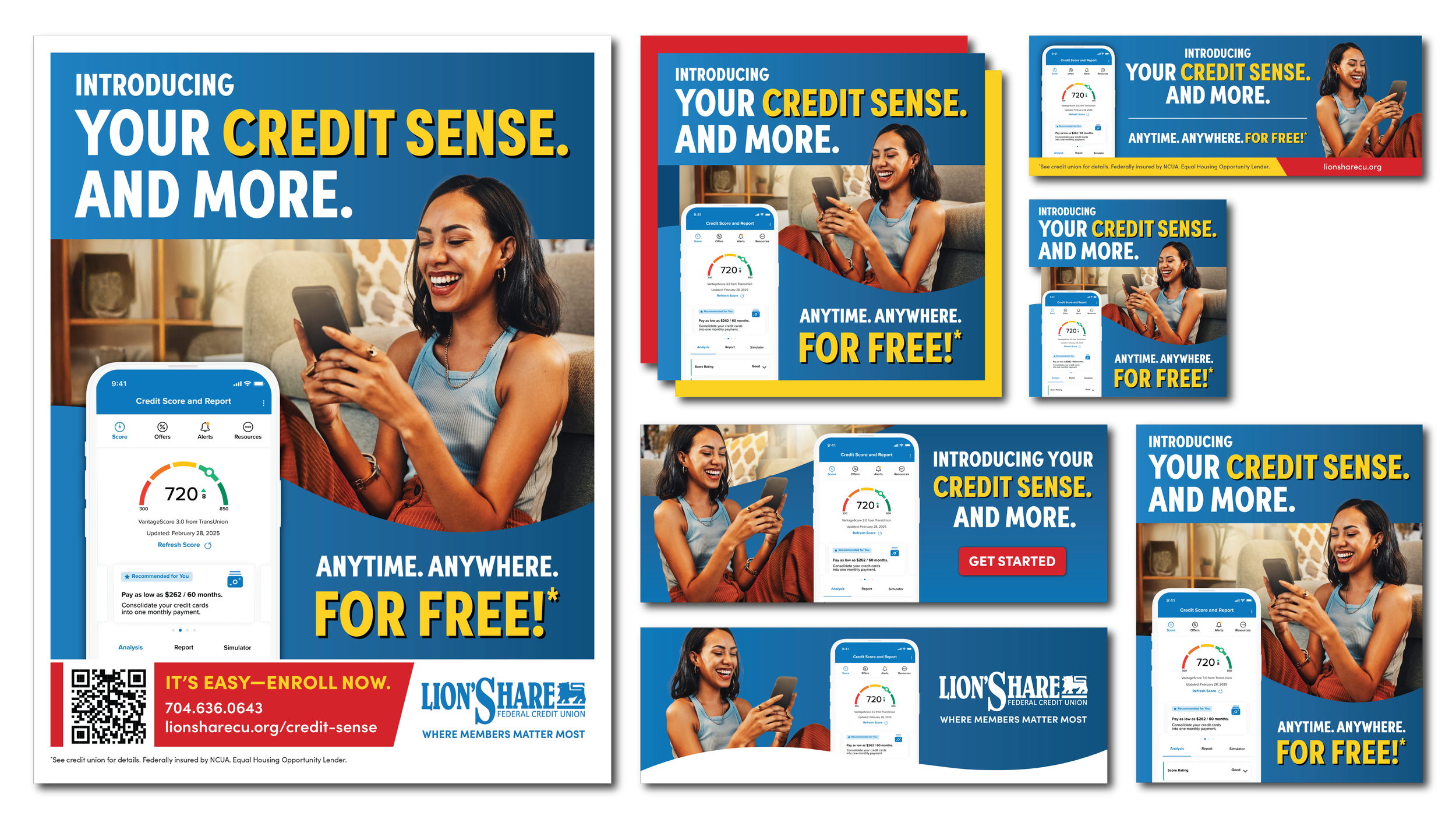 The campaign, "Introducing: Your Credit Sense & More," officially launches Lion’s Share’s partnership with SavvyMoney. It highlights the app’s key features through visual previews—plus, it’s completely free for members.